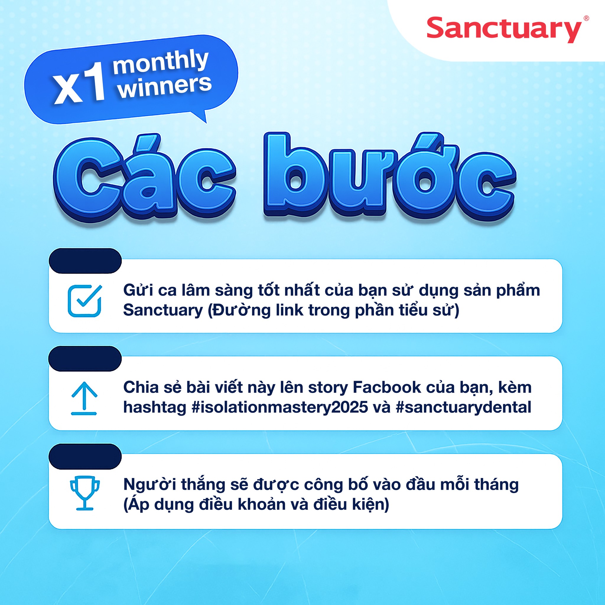Bước 3: Chia sẻ bài đăng này vào story Facebook của bạn và gắn hastag #isolationmastery2025 #sanctuarydental (ở chế độ Công khai).