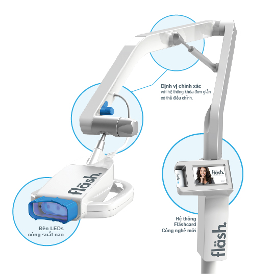 - Đèn tẩy trắng Fläsh, với công nghệ đèn LED công suất cao, ánh sáng quang phổ 465 nM, 190 mW/cm², 100–240 V.