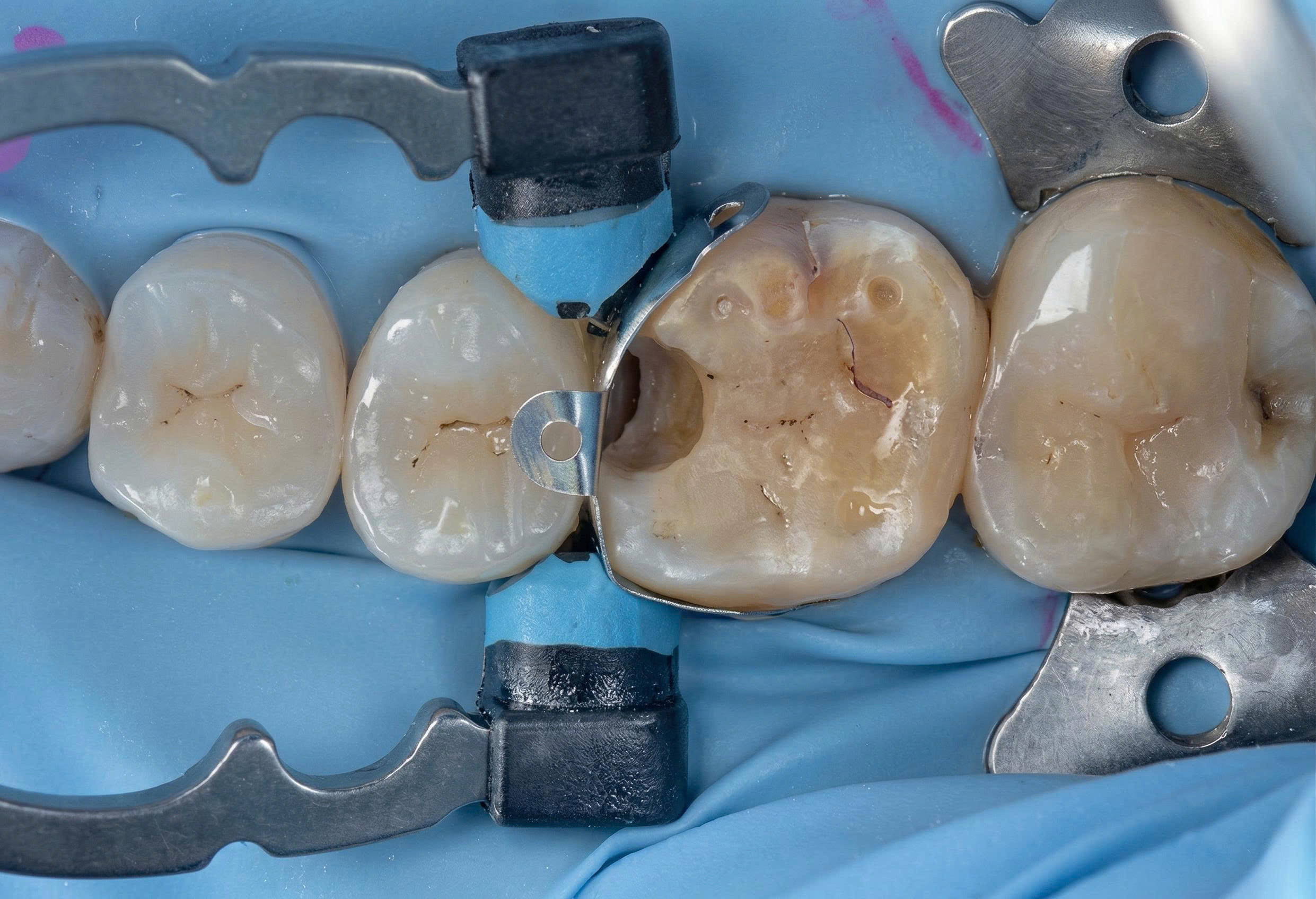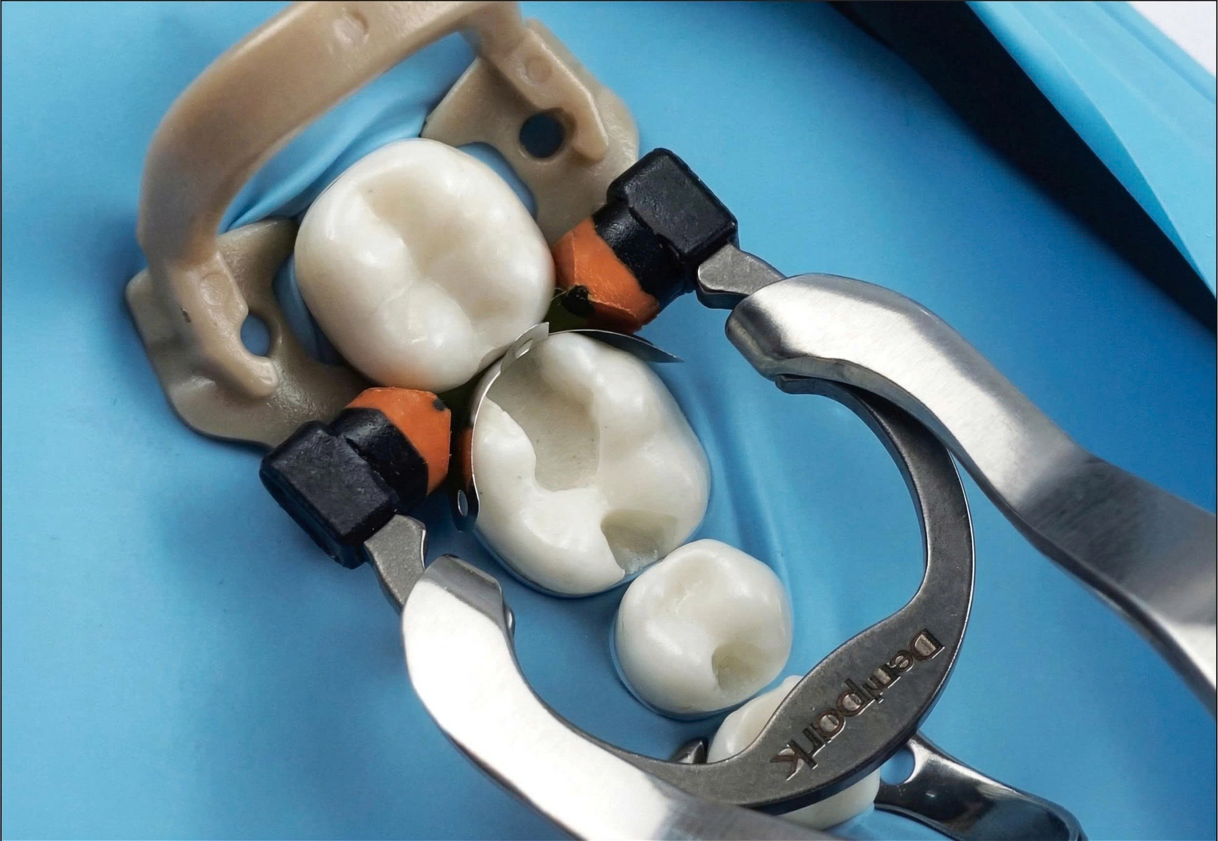 Khuôn trám bán phần M4 1.0: phù hợp với mở rộng nướu tại cổ răng; có chốt ở trên đặt khuôn dễ dàng và chốt ở bên hông để tháo khuôn.