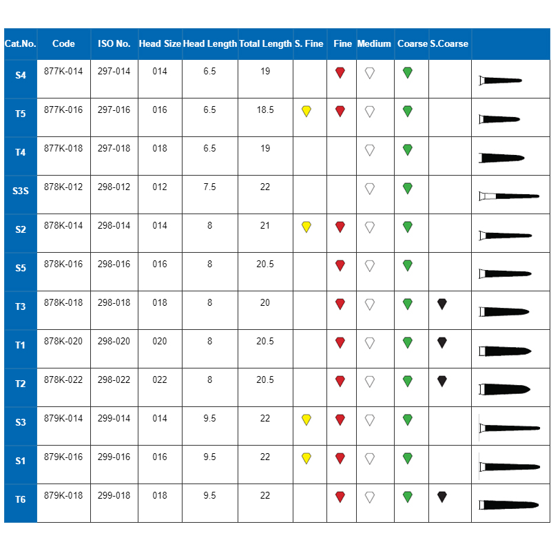 SF: Cực mịn, F: Mịn, M: Trung bình, C: Thô, SSM: Ngắn trung bình