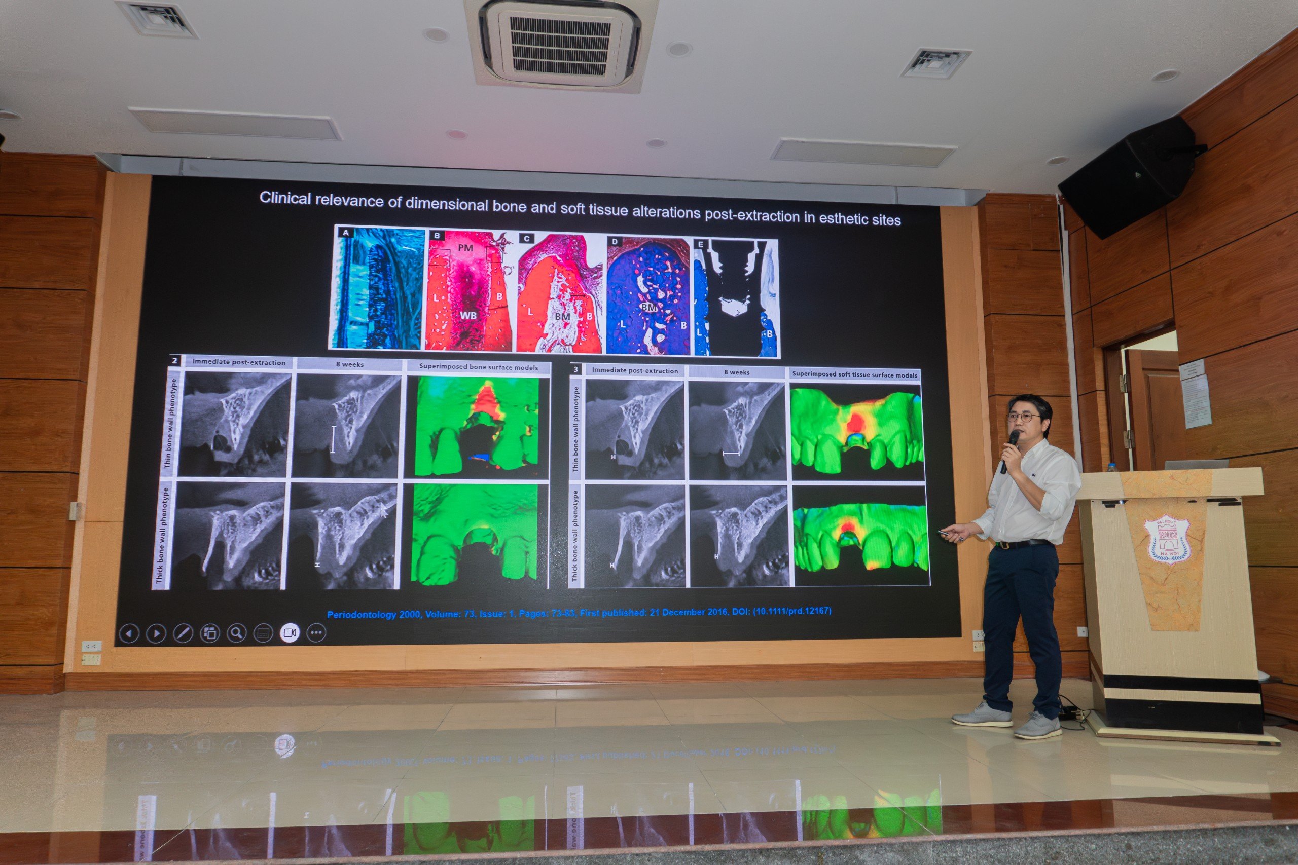 Báo cáo viên PGS. TS. Nguyễn Phú Thắng - Trưởng bộ môn Phẫu thuật miệng, Viện Đào tạo Răng Hàm Mặt, Đại học Y Hà Nội với phần trình bày CẬP NHẬT IMPLANT TỨC THÌ VÙNG THẨM MỸ