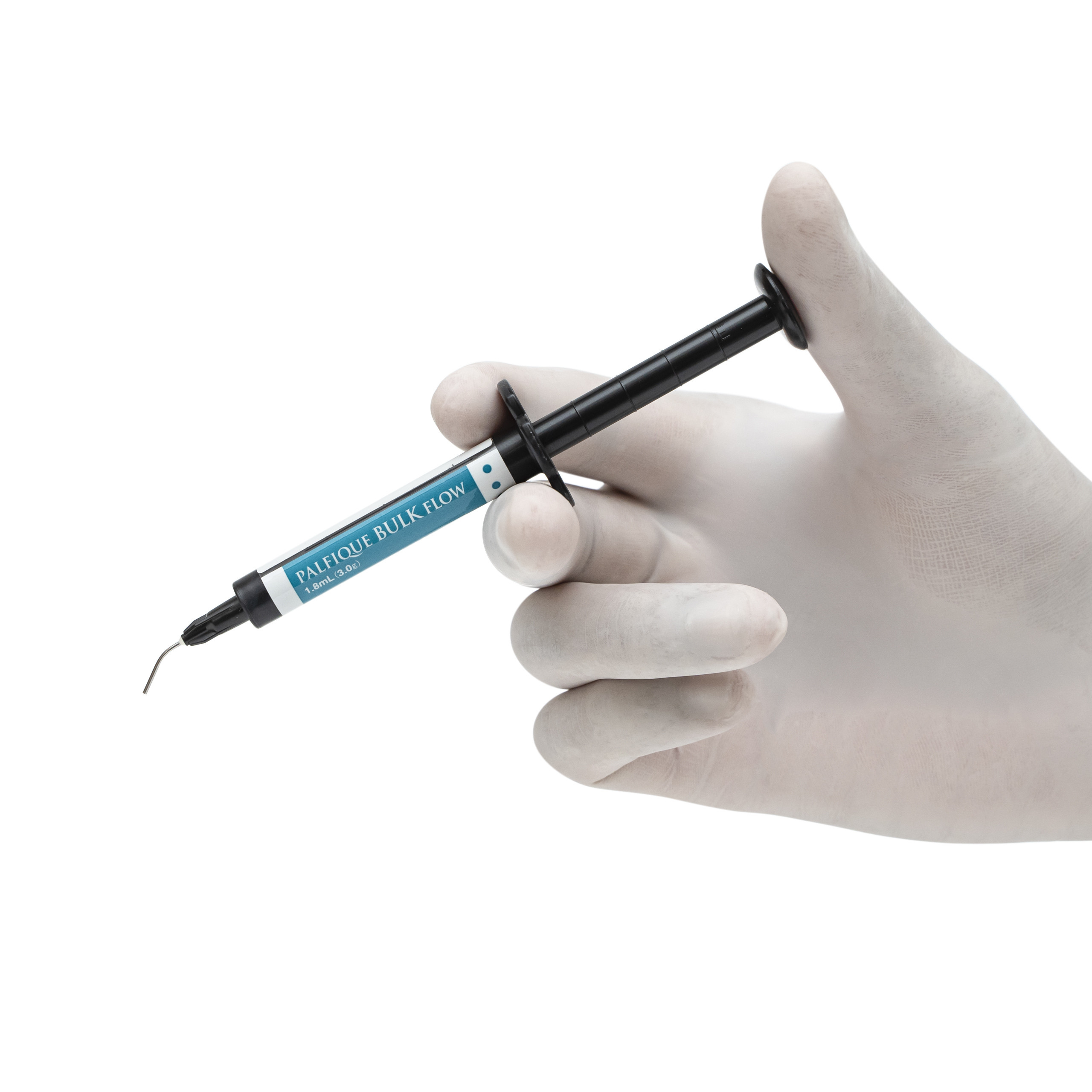 PALFIQUE® BULK FLOW là composite trám lượng lớn có tính chảy lỏng với chiếu đèn quang trùng hợp, nó sử dụng công nghệ hạt độn hình cầu (70% theo khối lượng / 56% theo thể tích) để mang lại hiệu quả phục hồi đơn giản và vượt trội hơn - không cần thêm lớp hoặc composite lên đến 4mm. Màu sắc, độ mờ và độ bóng cao cho kết quả thẩm mỹ tuyệt vời, cùng độ bền nén và độ uốn cao hơn, khả năng chống mài mòn cao hơn, độ co ngót thấp, khả năng xử lý sâu răng tuyệt vời đảm bảo cho phục hồi bền bỉ lâu dài, giúp bệnh nhân có thể yên tâm ăn nhai hoàn toàn không phải lo lắng.