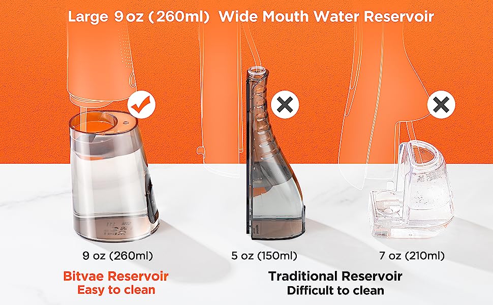 Tăm nước Bitvae C2 là sản phẩm chăm sóc răng miệng bán chạy nhất trên nền tảng Amazon. Bình chứa miệng rộng dễ dàng làm sạch - Giữ cho máy tăm nước của bạn sạch sẽ, khô ráo. Với bình chứa nước miệng rộng có thể tháo rời được nâng cấp, người dùng có thể làm sạch hoàn toàn cặn nước trong bình, điều mà những máy tăm nước truyền thống có bình chứa nước miệng nhỏ không thể làm được.
