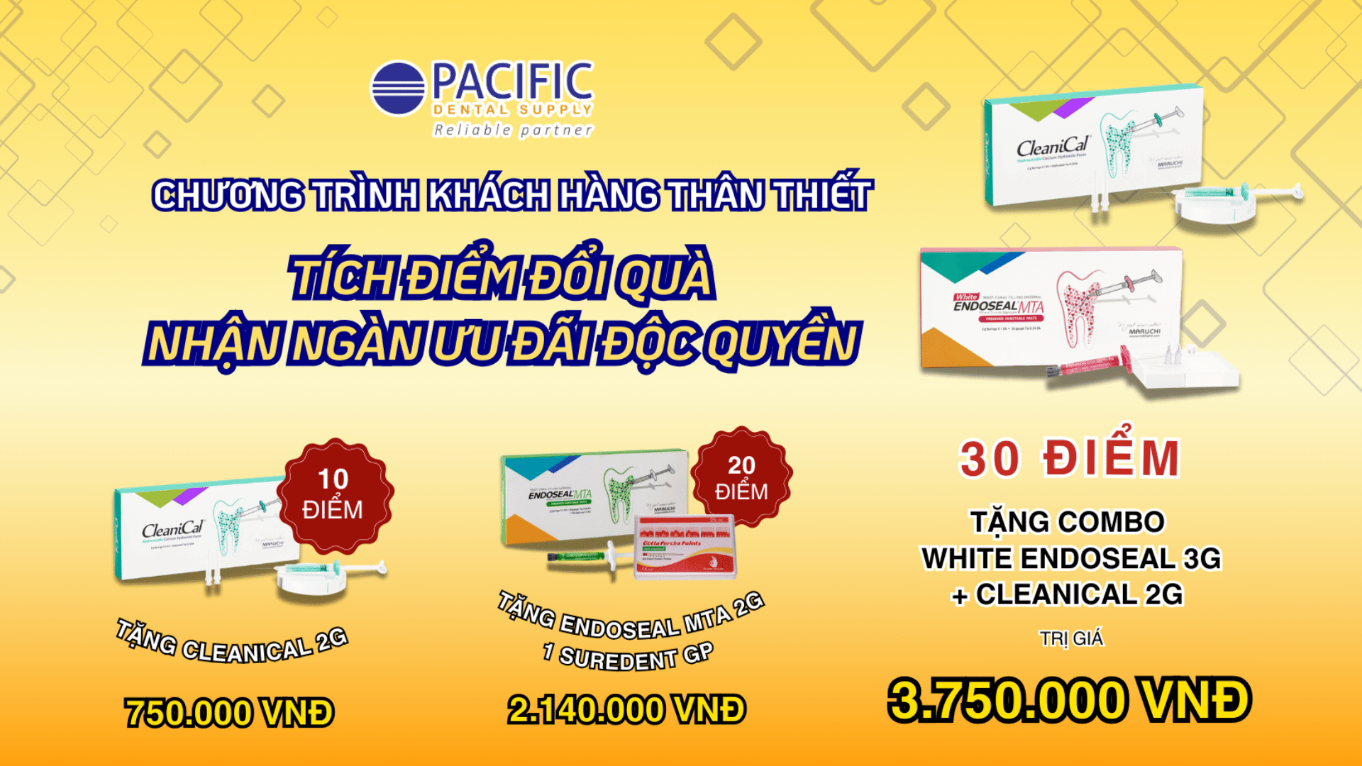 Pacific Dental cam kết đồng hành cùng các đơn vị nha khoa trong việc tối ưu chi phí và mang lại giá trị thiết thực qua mỗi đơn hàng. Hãy tham gia chương trình Tích điểm đổi quà ngay hôm nay để không bỏ lỡ những phần quà hấp dẫn!