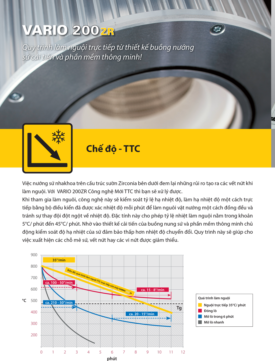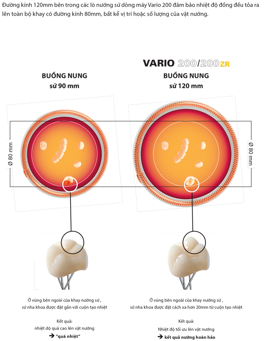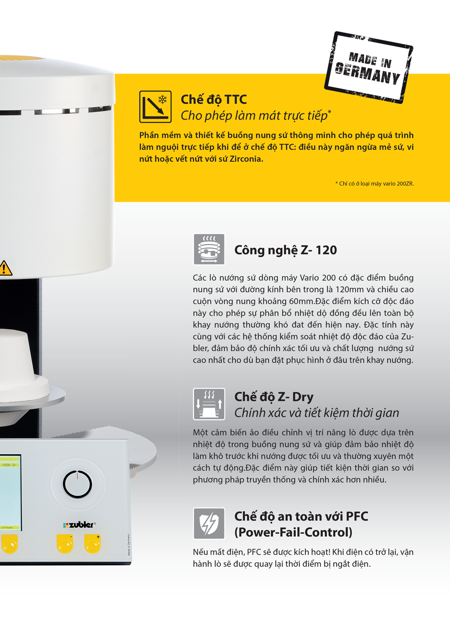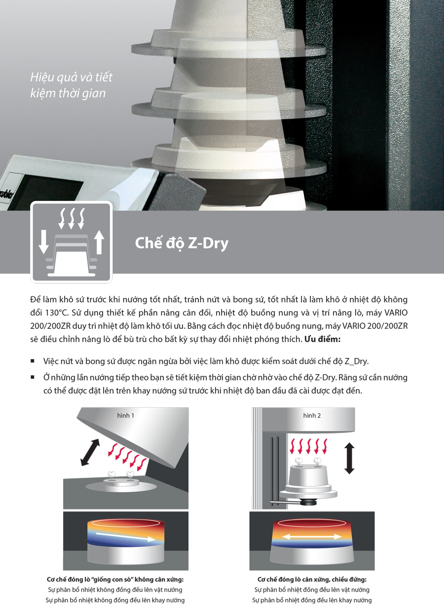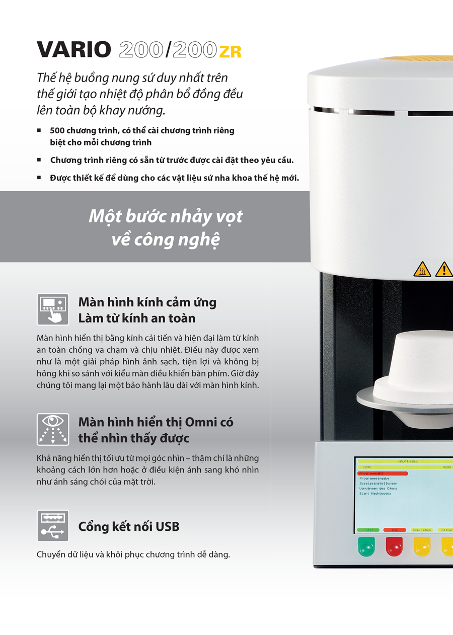 - Lò 200ZR với chế độ làm mát tuyến tính chuyên dụng cho nướng sứ trên sường sứ Zirconia.