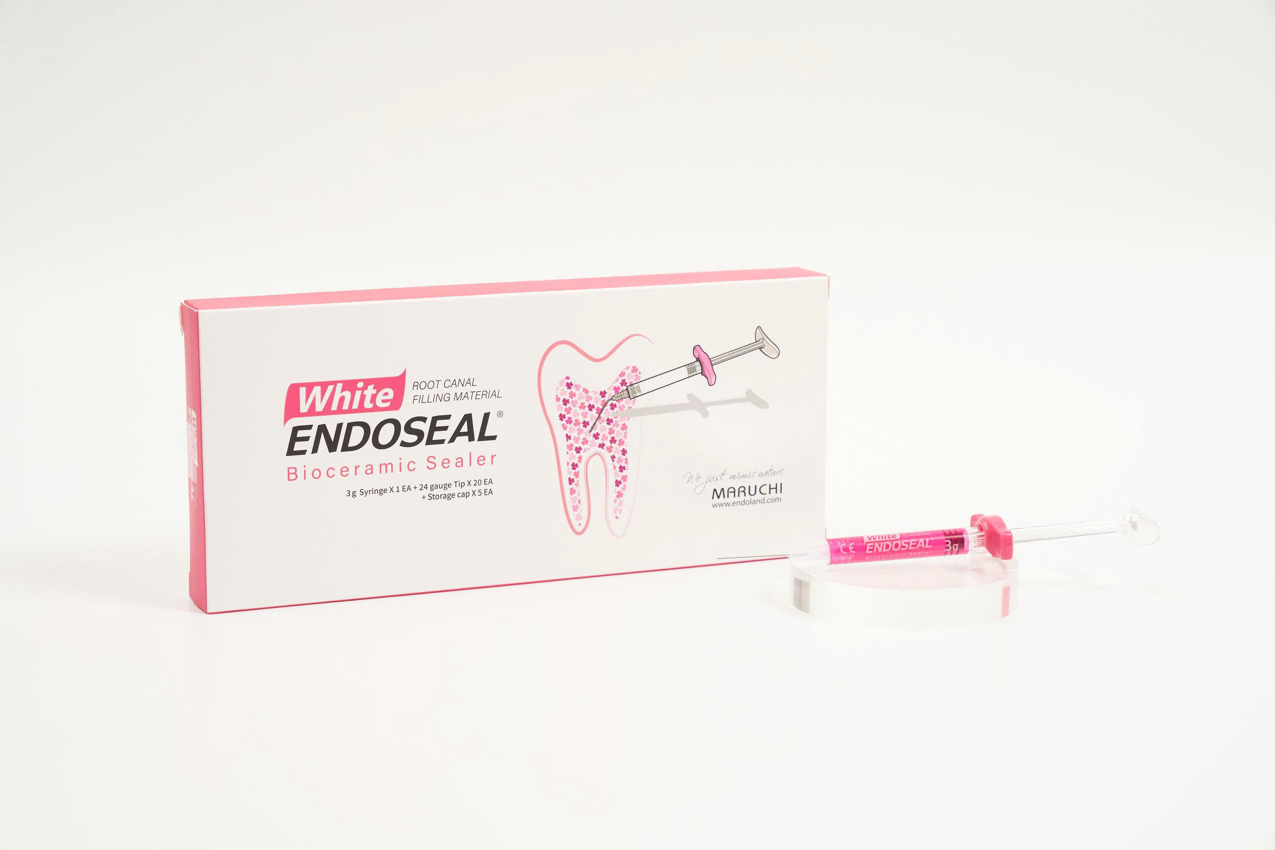 White Endoseal là xi măng trám sinh học trám bít ống tủy thế hệ mới nhất từ thương hiệu Maruchi, sản phẩm đạt tiêu chuẩn ISO 6876 được đóng gói sẵn trong ống tiêm, không cần trộn trước và đông cứng bằng cách hấp thụ độ ẩm từ môi trường ống tủy. Chất trám bít này có thể được sử dụng riêng lẻ hoặc kết hợp với côn gutta-percha.